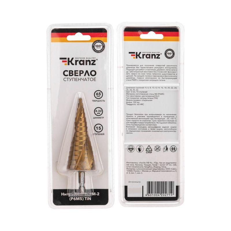 - Сверло ступенчатое по металлу ТИТАН 4.0-32.0мм Р6М5 Kranz KR-12-6613