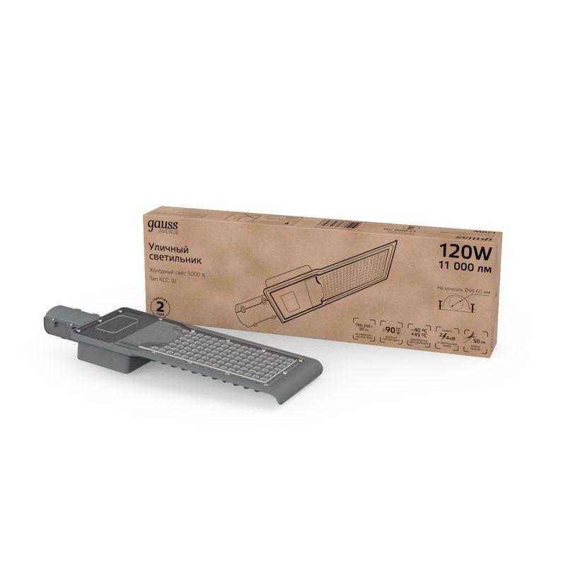 - Светильник светодиодный Avenue 120Вт 5000К IP65 11000лм 190-250В 546х170х67мм ДКУ уличный консольный КСС Ш черн. GAUSS 629534320