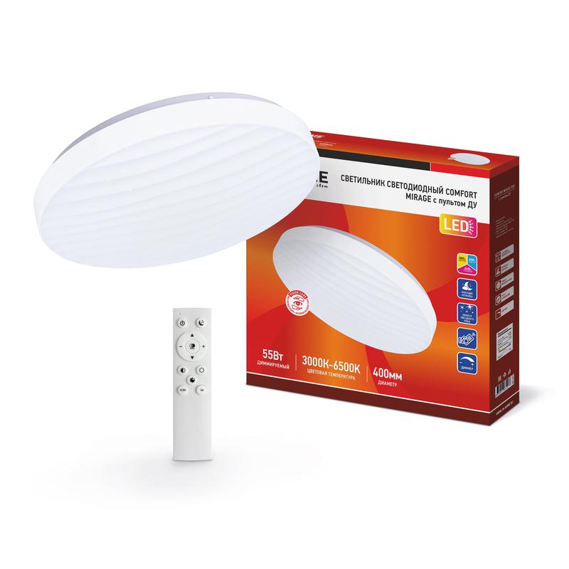 - Светильник светодиодный COMFORT MIRAGE 55Вт 230В 3000-6500К 4400лм 400х70мм с пультом ДУ IN HOME 4690612034577