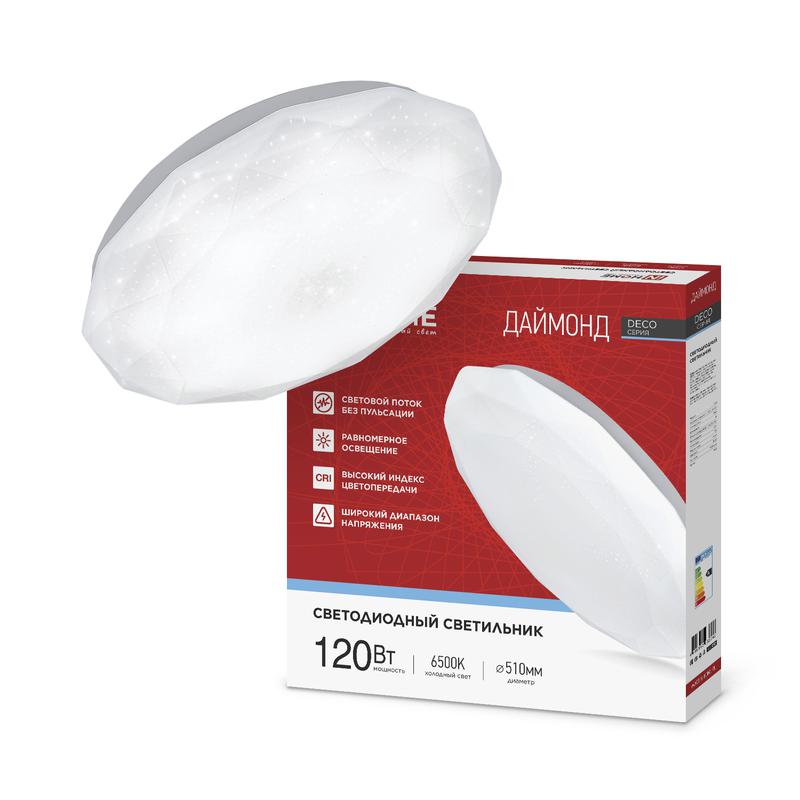- Светильник светодиодный DECO ДАЙМОНД 120Вт 6500К 12600лм 230В 496х85мм IN HOME 4690612062242