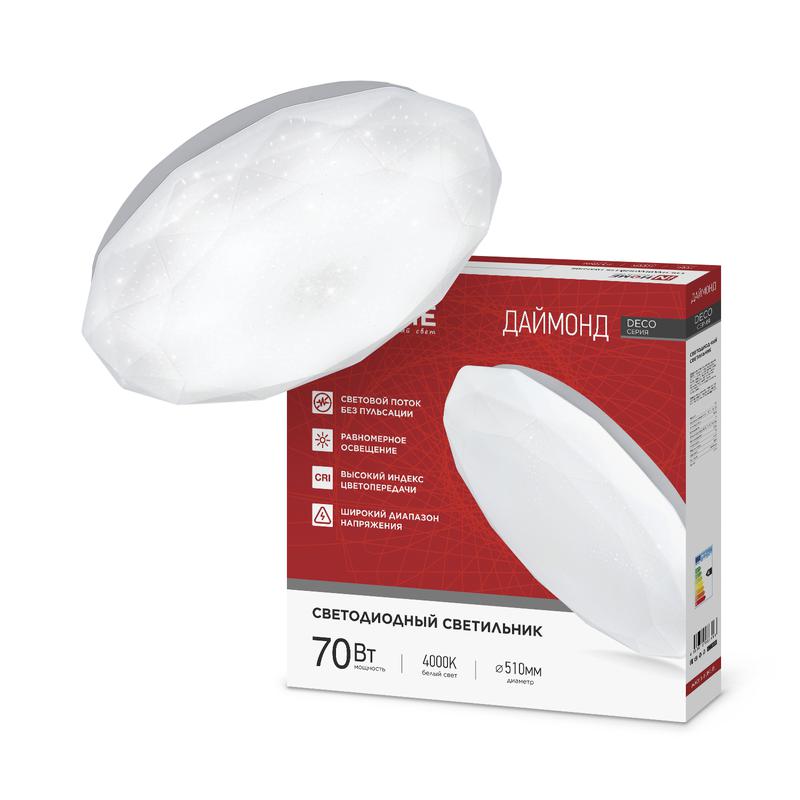 - Светильник светодиодный DECO ДАЙМОНД 70Вт 4000К 6300лм 230В 510х70мм IN HOME 4690612063416