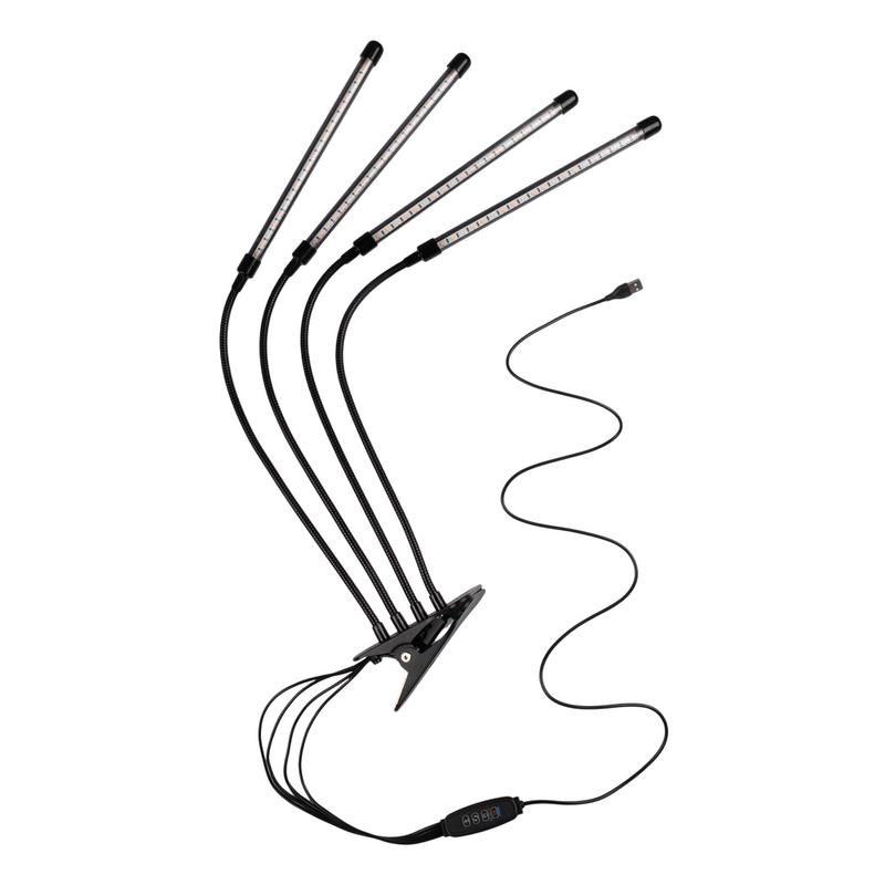 - Светильник светодиодный "КРИСТАЛЛ" CTL2-USB-bl Agro 4х10Вт IP40 для растений спектр 4 плафона на прищепке пульт на шнуре красн./син. ФАZА 5068810