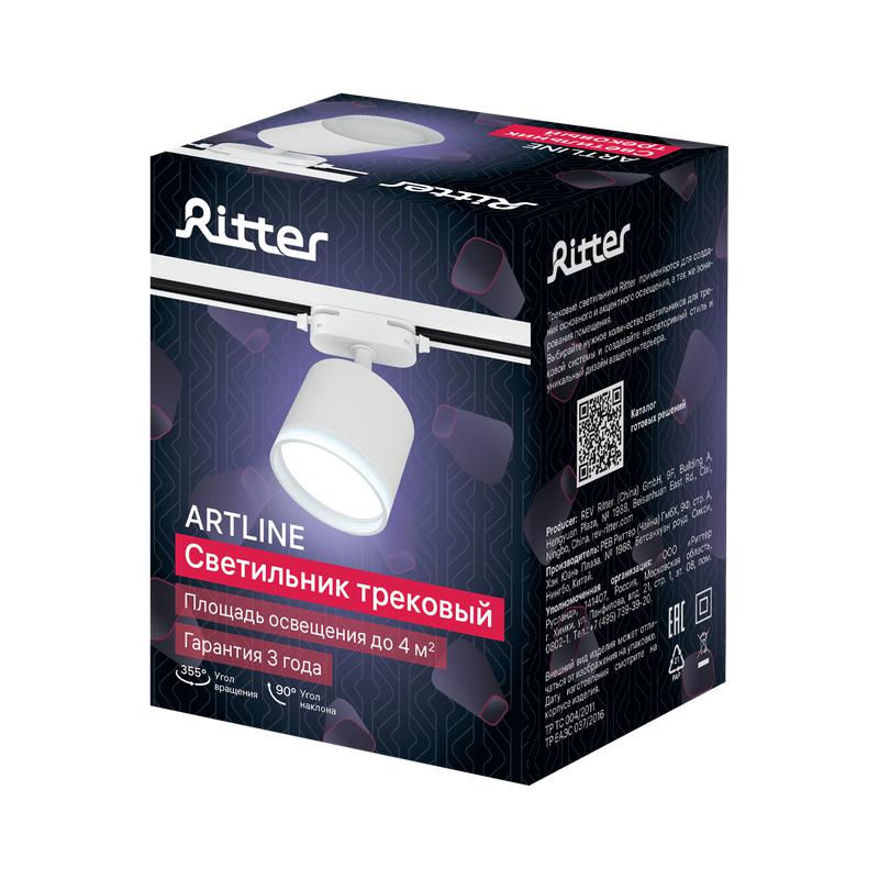 - Светильник трековый ARTLINE поворотный 85х85х70мм GX53 230В алюм./пластик. 4кв.м бел. Ritter 59861 3