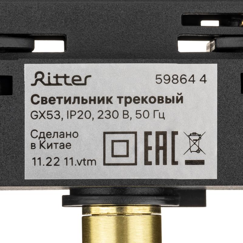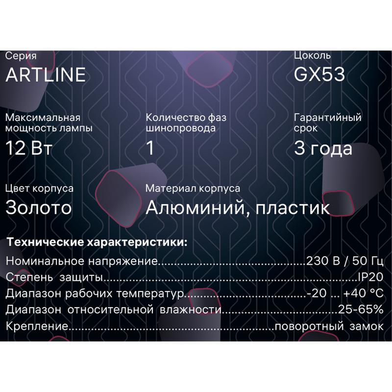 - Светильник трековый ARTLINE поворотный 85х85х70мм GX53 230В алюм./пластик. 4кв.м зол. Ritter 59864 4