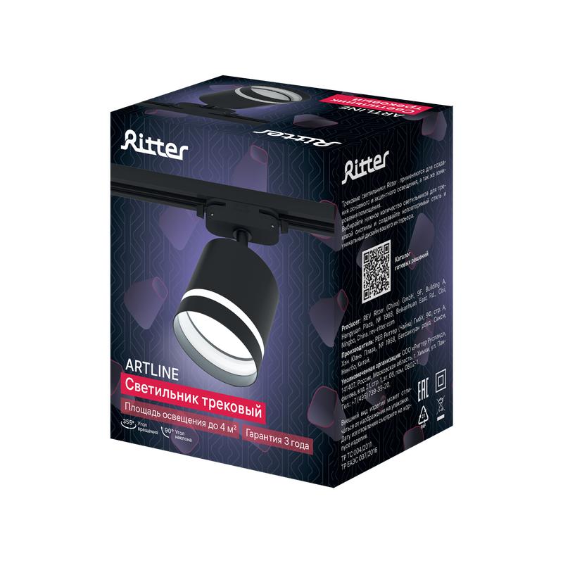 - Светильник трековый ARTLINE поворотный 85х85х80мм GX53 230В алюм./пластик. 4кв.м Ritter 59866 8