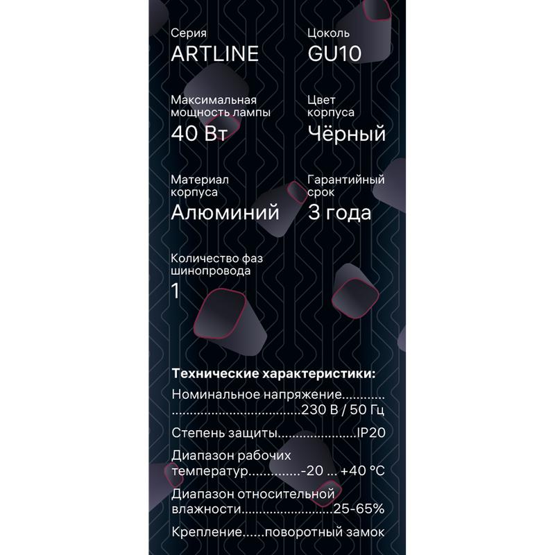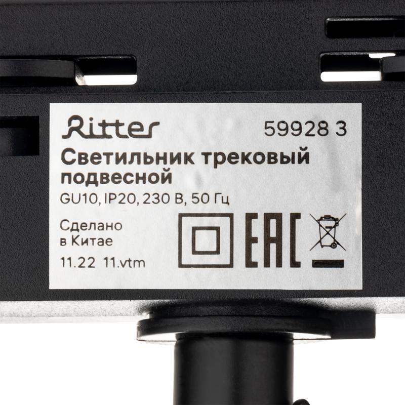- Светильник трековый подвес ARTLINE 55х55х100мм GU10 230В алюм. 2.6кв.м черн.н. Ritter 59928 3