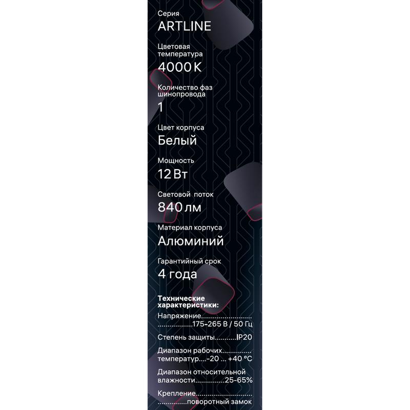 - Светильник трековый подвес светодиодный ARTLINE 40х40х300мм 12Вт 840Лм 4000К 230В алюм. 5.5кв.м бел. Ritter 59706 7