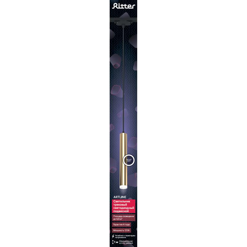 - Светильник трековый подвес светодиодный ARTLINE 40х40х300мм 12Вт 840Лм 4000К 230В алюм./пластик. 5.5кв.м зол. Ritter 59714 2