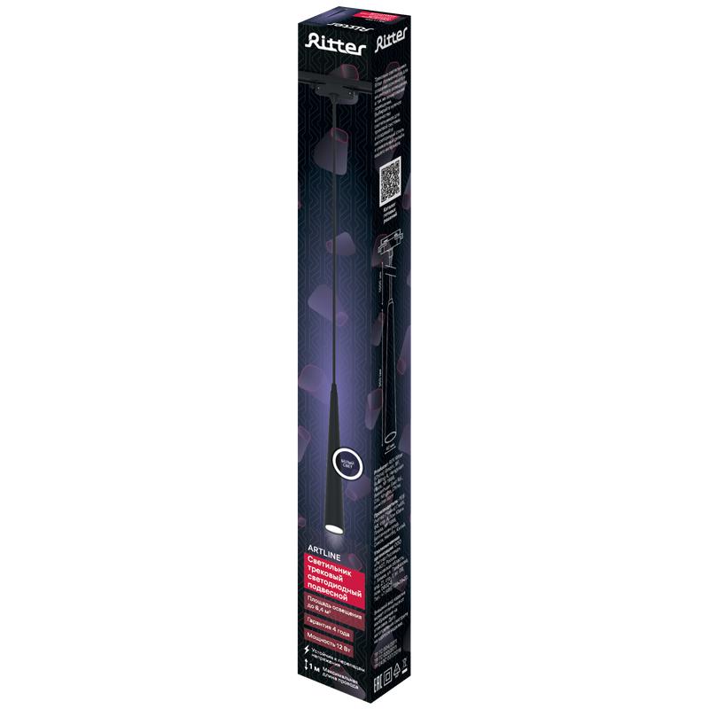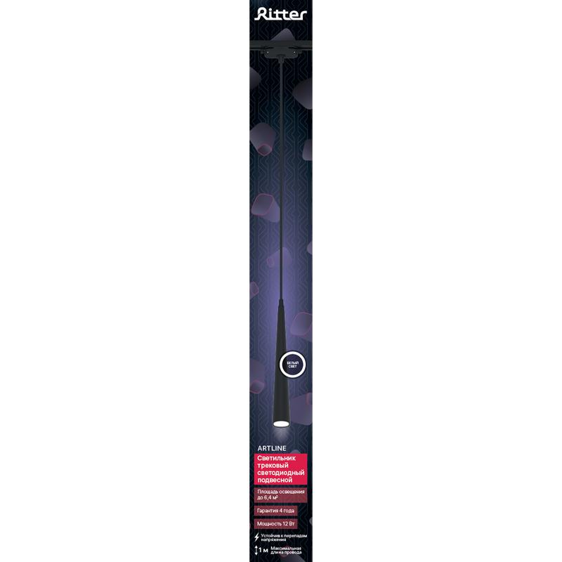 - Светильник трековый подвес светодиодный ARTLINE 40х40х300мм 12Вт 960Лм 4000К 230В алюм. 6.4кв.м черн.н Ritter 59713 5