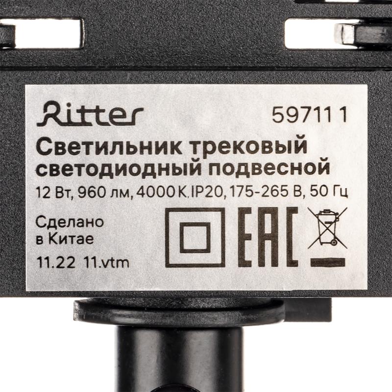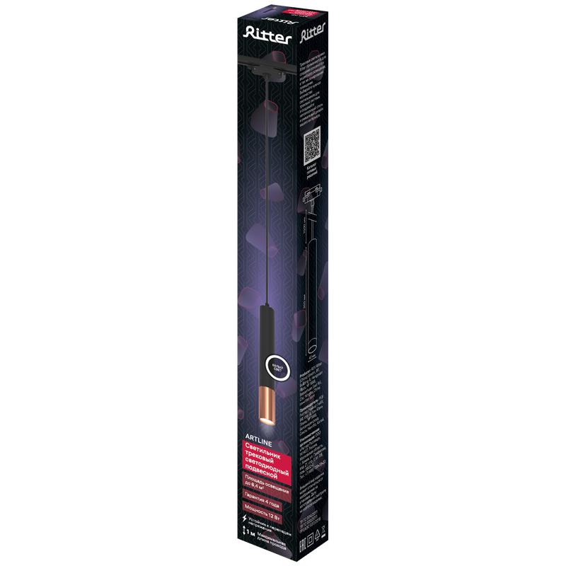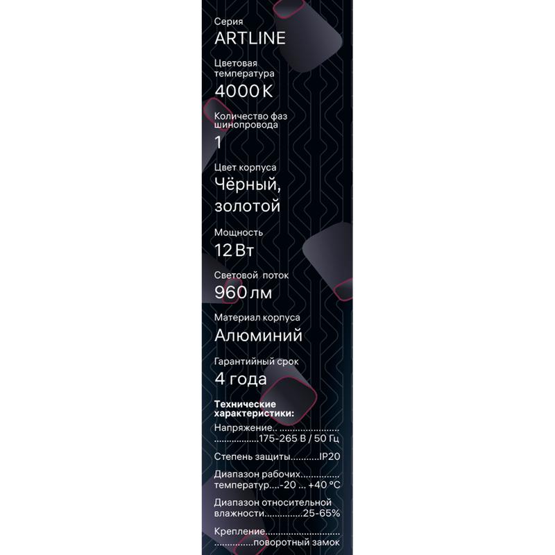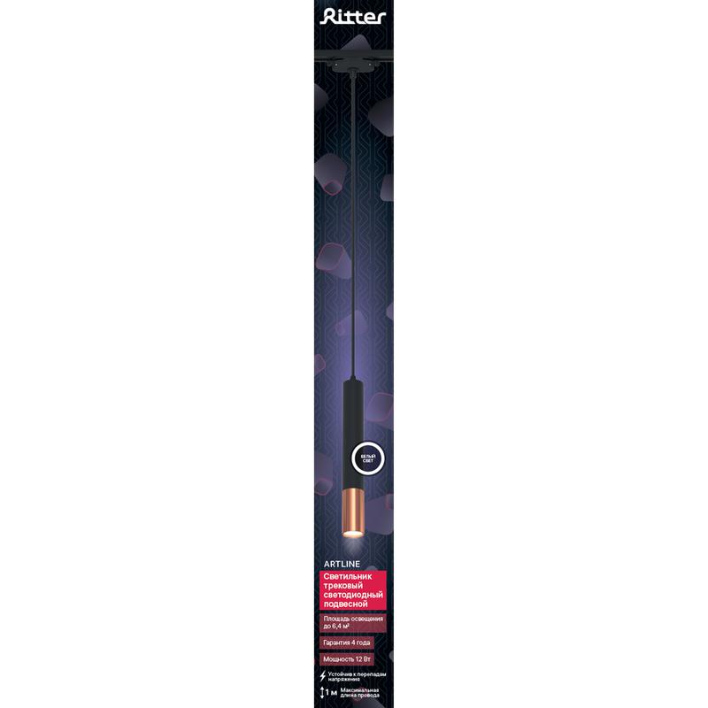 - Светильник трековый подвес светодиодный ARTLINE 40х40х300мм 12Вт 960Лм 4000К 230В алюм. 6.4кв.м черн./зол. Ritter 59711 1