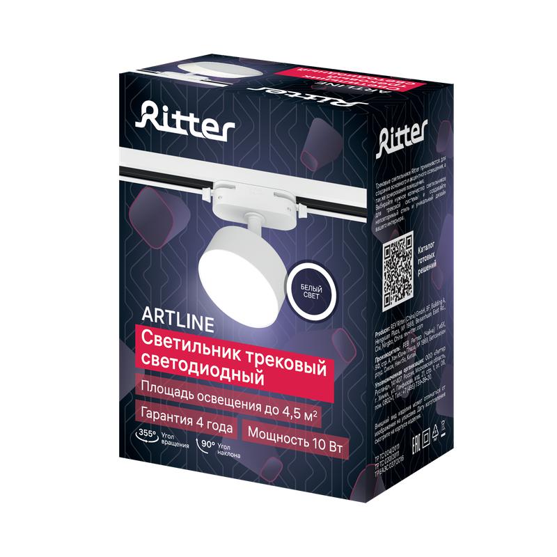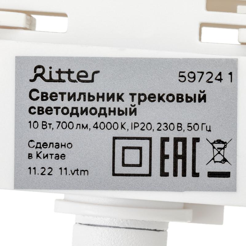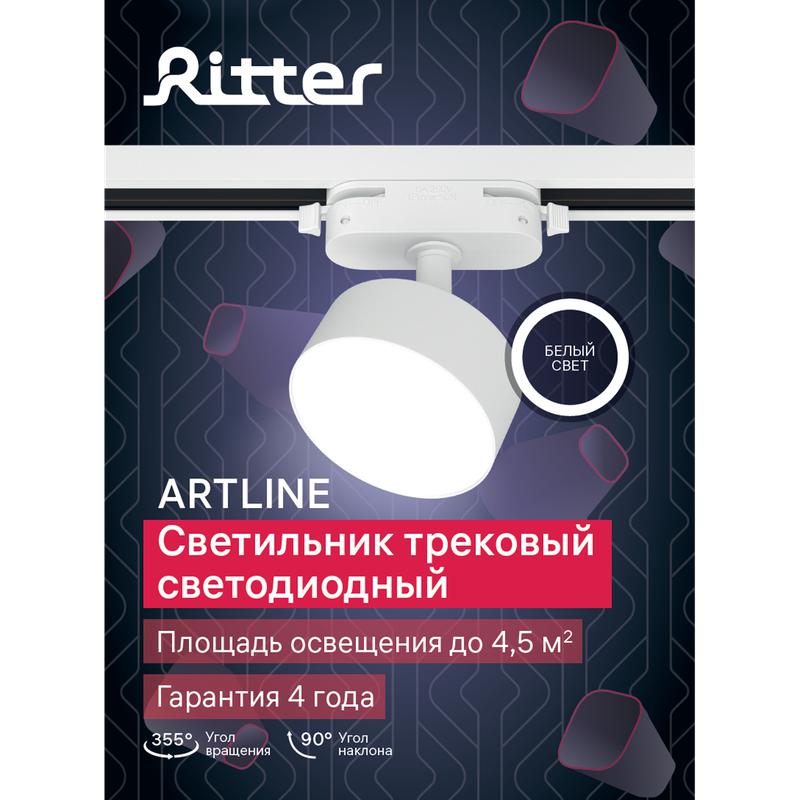 - Светильник трековый светодиодный ARTLINE поворотный 75х75х30мм 10Вт 700Лм 4000К 230В алюм. 4.5кв.м бел. Ritter 59724 1