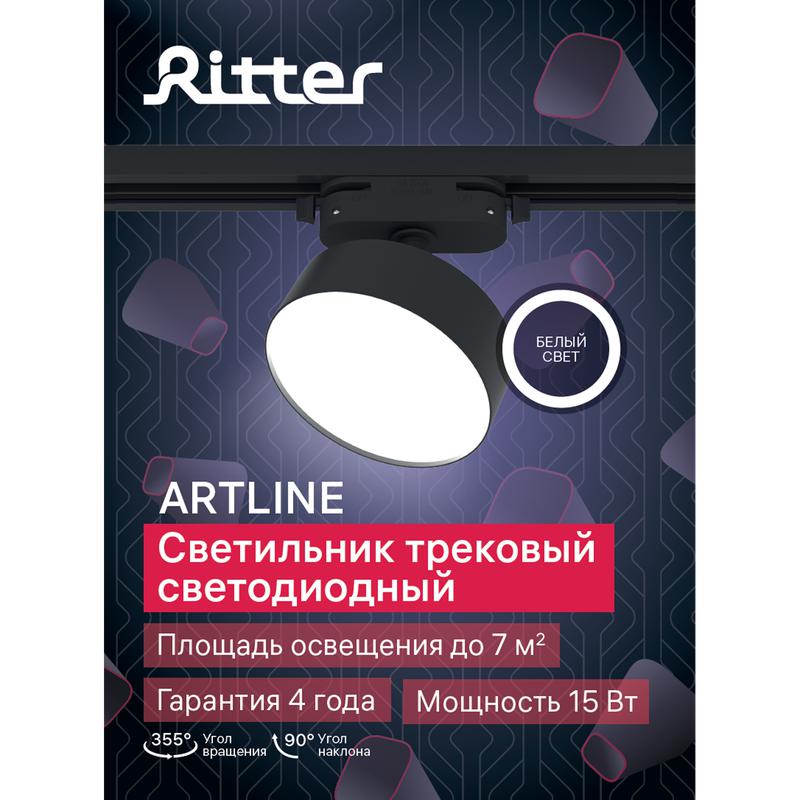 - Светильник трековый светодиодный ARTLINE поворотный 95х95х30мм 15Вт 1050Лм 4000К 230В алюм. 7кв.м черн. Ritter 59725 8