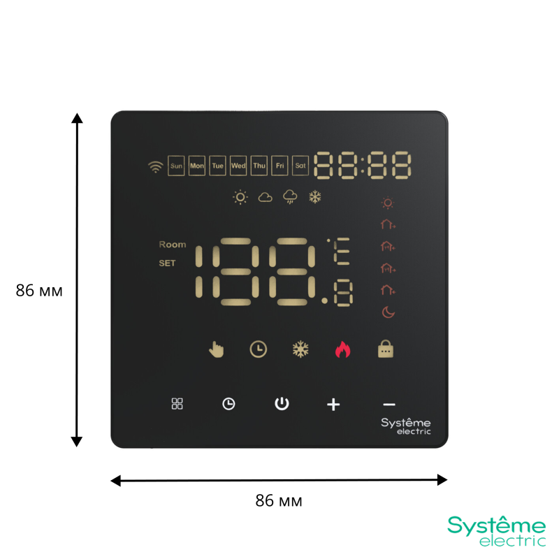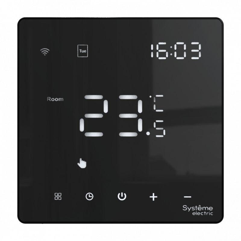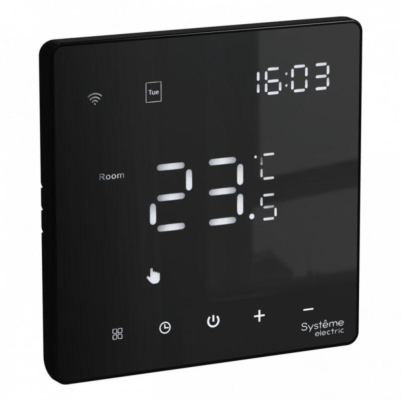 - Термостат программируемый ArtGallery 16А с Wi-Fi для электрич. теплого пола моноблочный черн. SE GAL001038