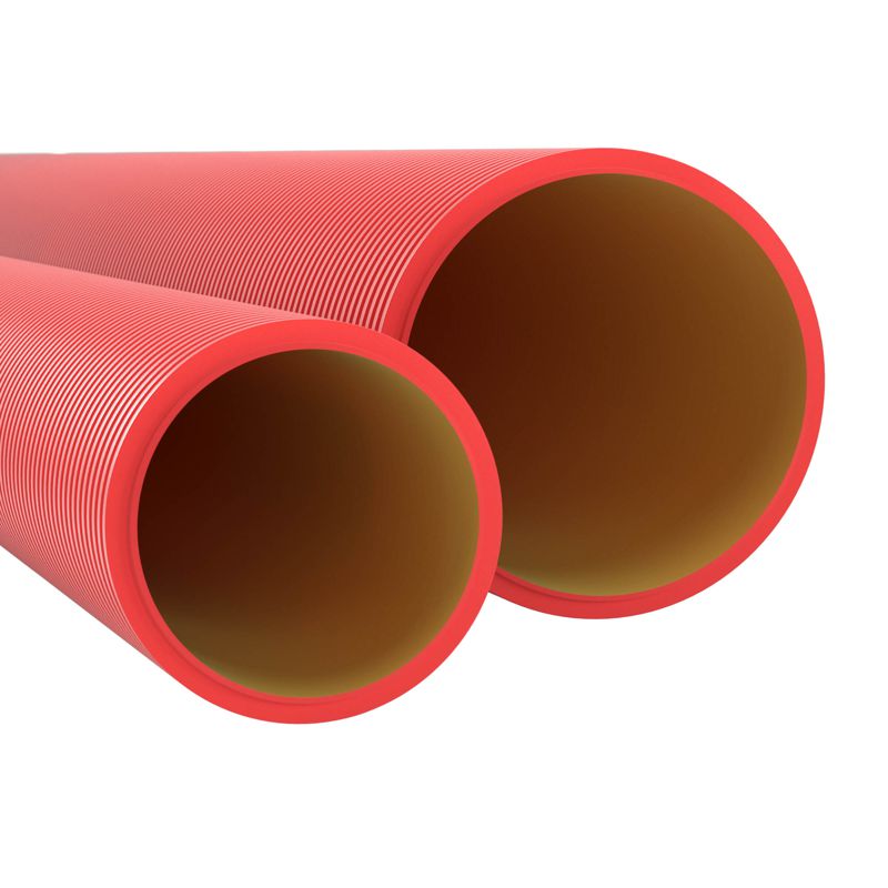 - Труба гофрированная двустенная ПНД жесткая d200мм с муфтой для кабельной канализации SN8 1010Н красн. (уп.6м) DKC 160920-8K