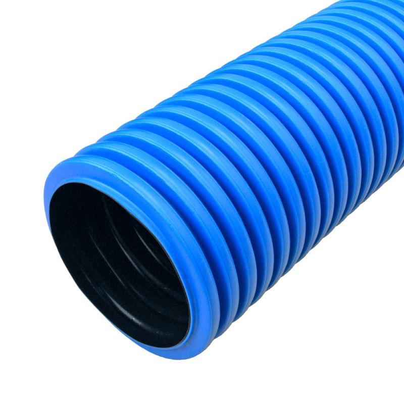 - Труба гофрированная двустенная ПНД жесткая d90мм SN19 750 син. (дл.6м) Промрукав PR15.0074