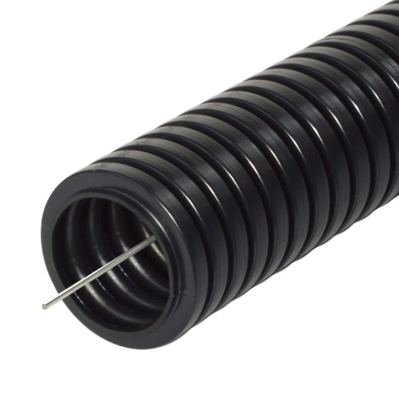 - Труба гофрированная ПА d16мм с протяжкой безгалоген. (HF) стойкая к УФ черн. (уп.100м) Промрукав PR02.0067