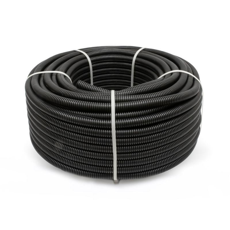 - Труба гофрированная ПА dвн 9.8мм dнар 13.2мм безгалоген. (HF) стойкая к УФ разрезная черн. (уп.50м) Промрукав PR02.0314