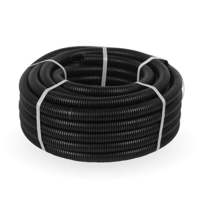 - Труба гофрированная ПНД легкая d32мм с протяжкой 350 Н безгалоген. (HF) стойкая к УФ черн. (уп.25м) Промрукав 161559