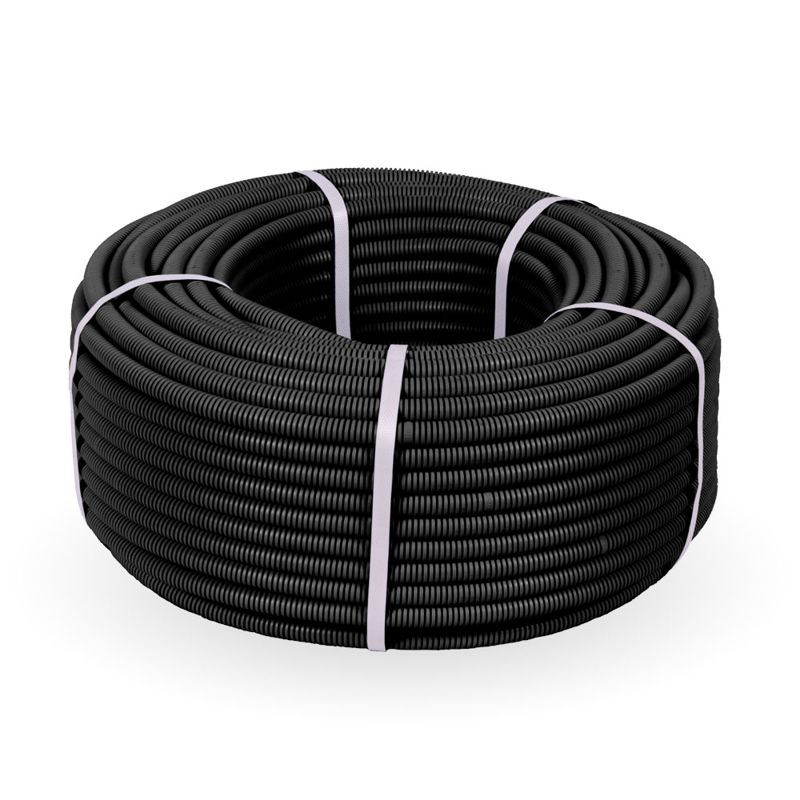 - Труба гофрированная ПНД тяжелая d16мм с протяжкой 750 Н безгалоген. (HF) стойкая к УФ черн. (уп.100м) Промрукав PR.021641