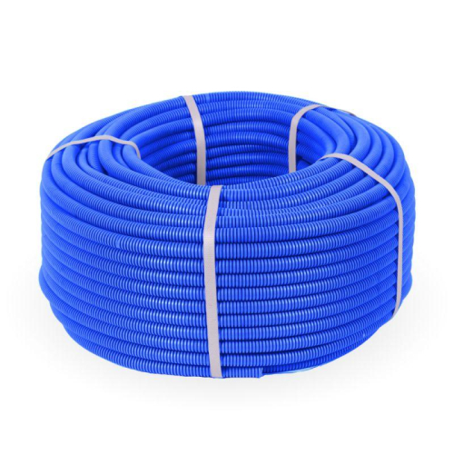 - Труба гофрированная ПП легкая d20мм с протяжкой 350 Н безгалоген. (HF) син. (уп.100м) Промрукав PR02.0052