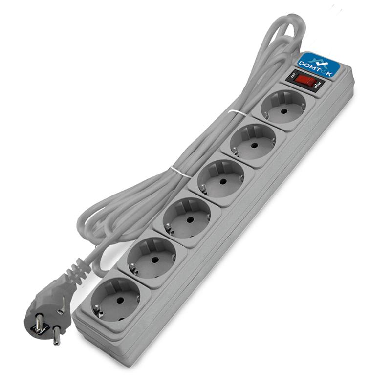 - Удлинитель с сетевым фильтром 6х1.8м с заземл 10А IP20 2.2кВт ПВС 3х1 с выкл. сер. DOMTOK 2518