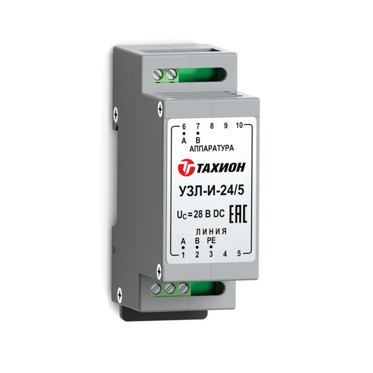 - Устройство защиты интерфейсов с подачей питания и обеспечивает передачу питания 24В DC по сигнальным парам 5А УЗЛ-И-24/5 Тахион 20136