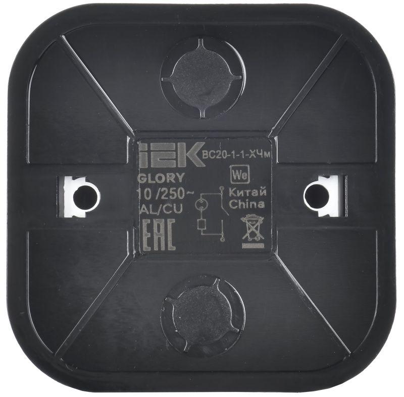- Выключатель 1-кл. ОП GLORY ВС20-1-1-ХЧм 10А с индикацией черн. матов. IEK EVH11-K02M-10