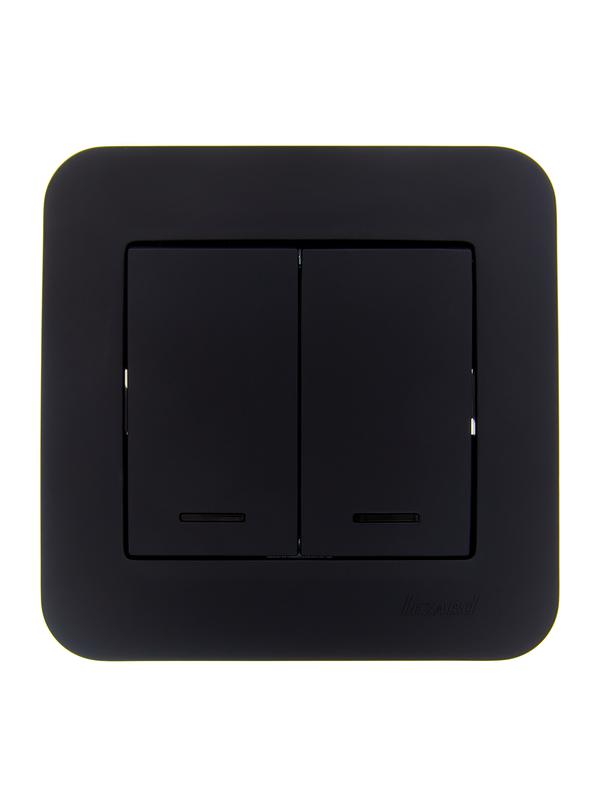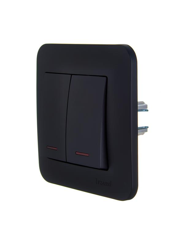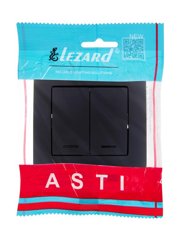 - Выключатель 2-кл. 1п СП ASTI 10А IP20 с подсветкой в сборе черн. бархат LEZARD 7081-4242-112