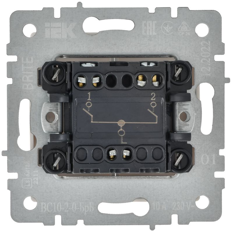 - Выключатель 2-кл. Brite 10А ВС10-2-0-БрБ механизм бел. IEK BR-V20-0-10-K01-PRO