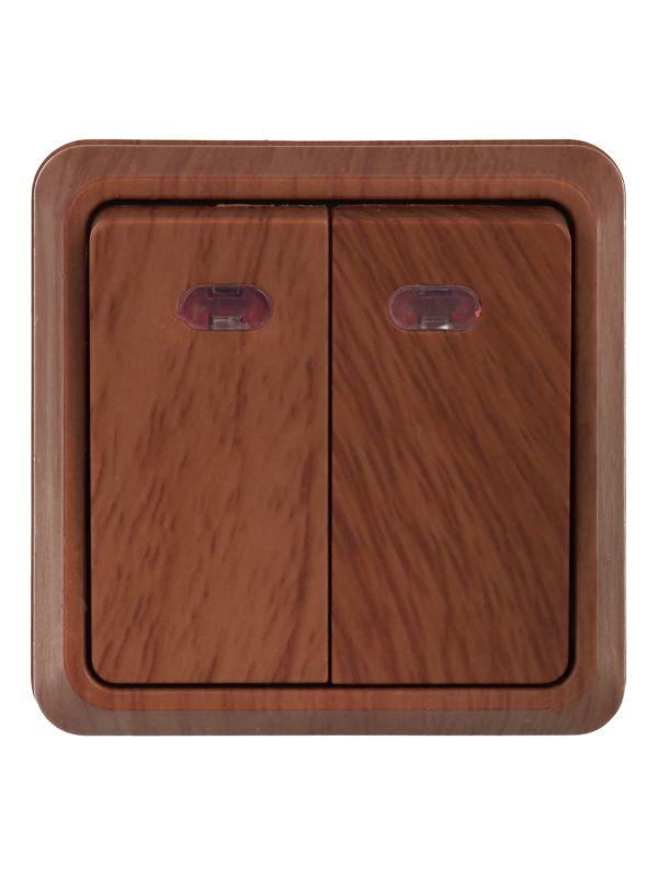 - Выключатель 2-кл. ОП Октава 10А IP20 ВС20-2-1-ОД с индикацией дуб GENERICA EVO21-K04-10-DC