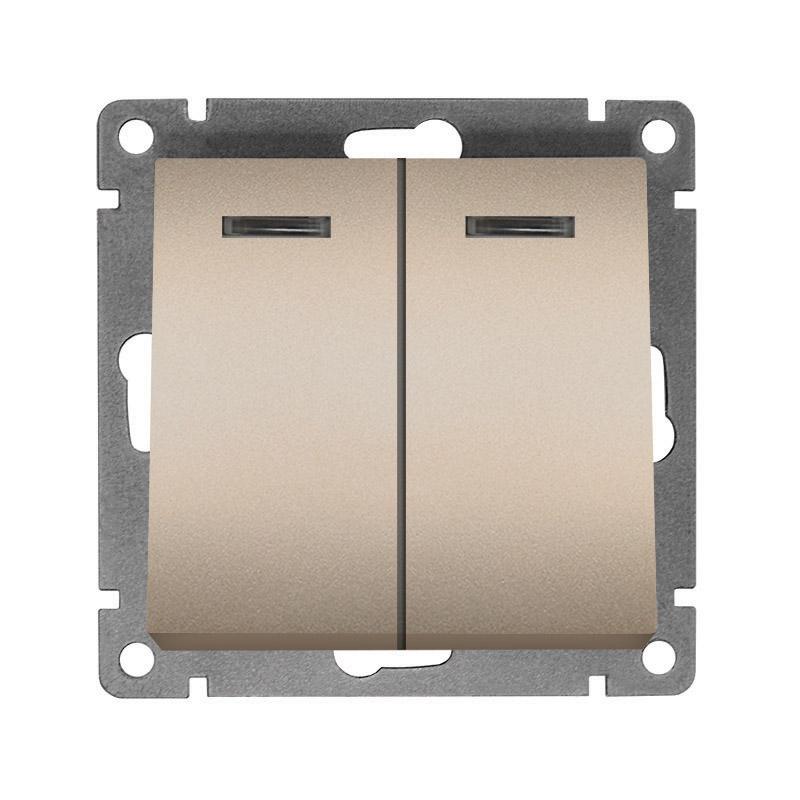 - Выключатель 2-кл. СП Афина 10А IP20 с подсветкой механизм шампань Universal A0123-Br