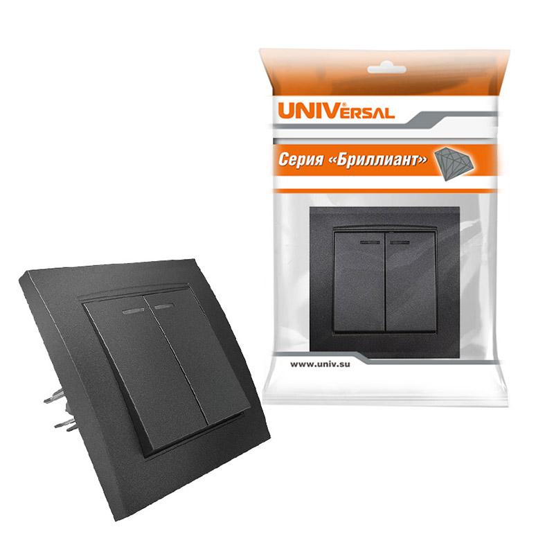 - Выключатель 2-кл. СП Бриллиант 10А IP20 с подсветкой в сборе графит Universal 7947410-Gr