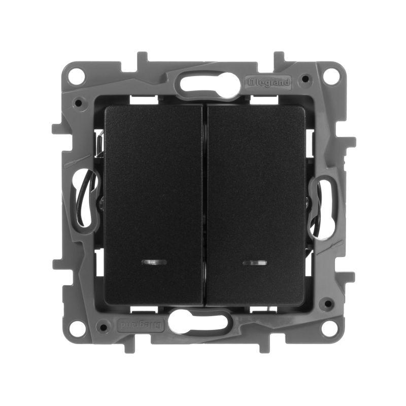 - Выключатель 2-кл. СП Etika 10А IP20 250В 10AX с подсветкой/индикацией авт. зажимы механизм антрацит IEK 672604