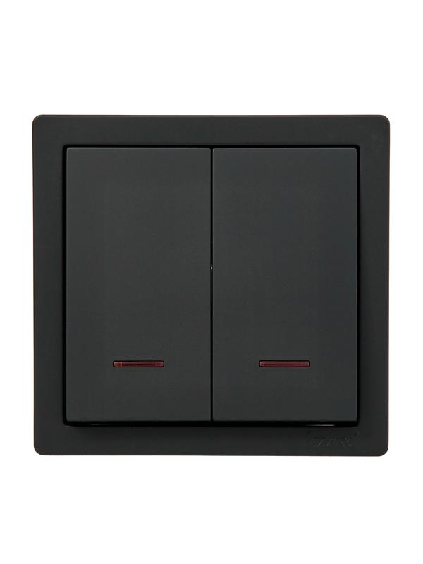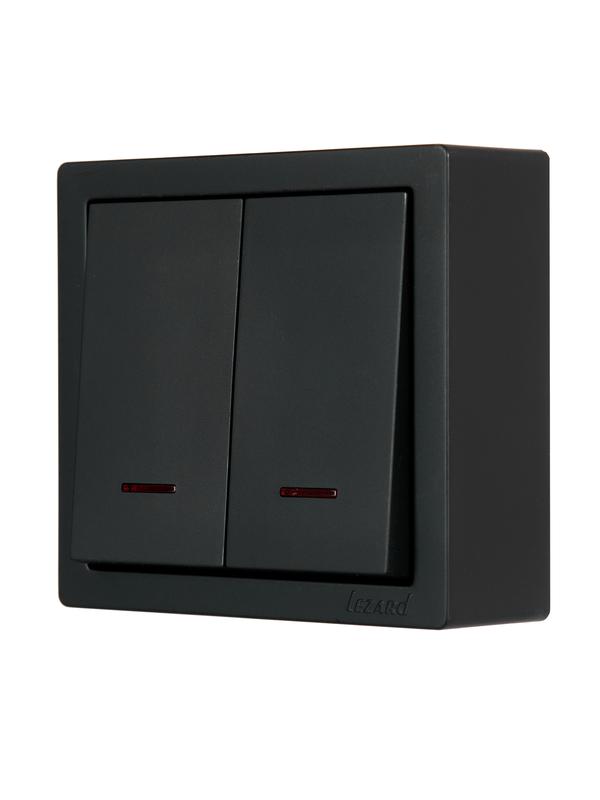 - Выключатель 2-кл. ОП LETO с индикацией черн. бархат LEZARD 752-4200-112