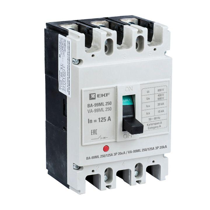 - Выключатель автоматический 3п 250/125А 20кА ВА-99МL Basic EKF mccb99-250-125mi