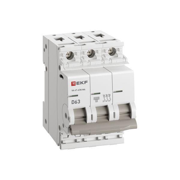 - Выключатель автоматический 3п D 63А 6кА ВА 47-63N MA без теплового расцеп. PROxima EKF M63MA6363D