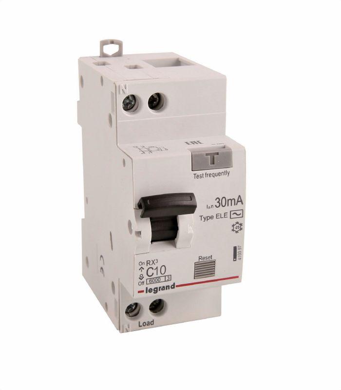 - Выключатель автоматический дифференциального тока 2п (1P+N) C 10А 30мА тип AC 6кА RX3 ИЭК Leg 419397