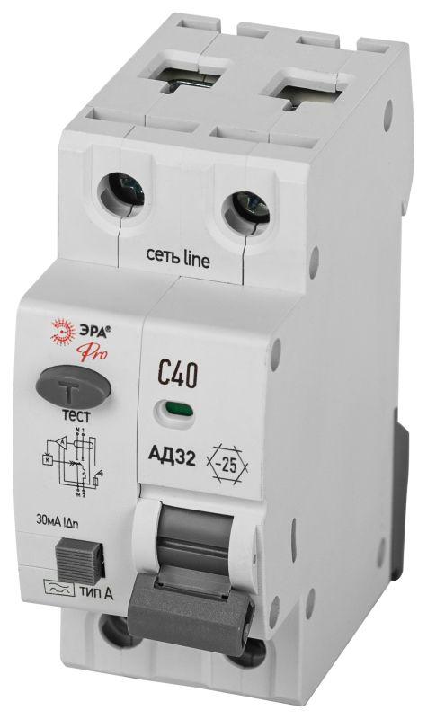 - Выключатель автоматический дифференциального тока 1P+N C 40А 30мА тип А АВДТ 4.5кА PRO D32E2C40А30 АД32 электронное Эра Б0057393