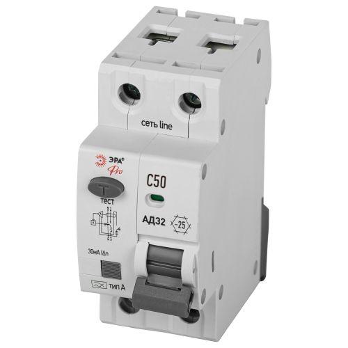 - Выключатель автоматический дифференциального тока 1P+N C 50А 30мА тип А АВДТ 4.5кА PRO D32E2C50А30 АД32 электронное Эра Б0057389