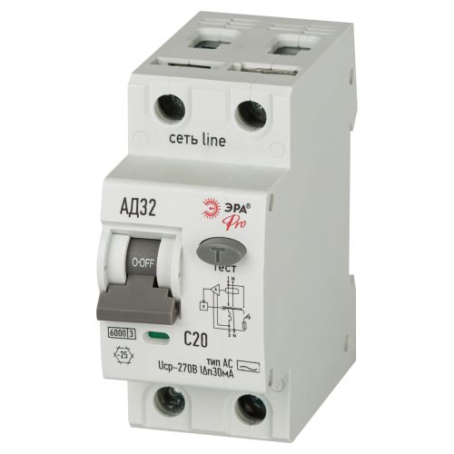 - Выключатель автоматический дифференциального тока 2п (1P+N) C 20А 30мА тип AC 6кА АД-32 электрон. защита 230В PRO D326E2C20AC30P Эра Б0059112