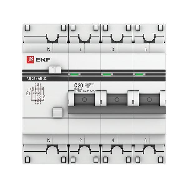 - Выключатель автоматический дифференциального тока 4п (3P+N) C 20А 30мА тип AC 4.5кА АД-32 защита 270В электрон. PROxima EKF DA32-20-30-4P-pro