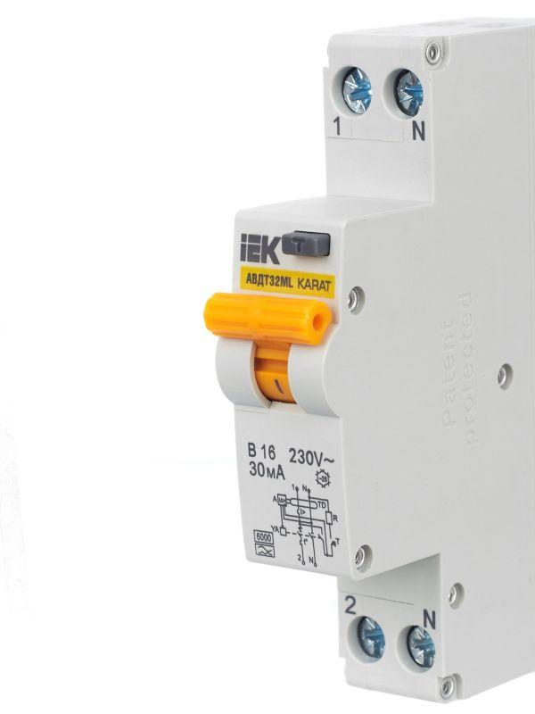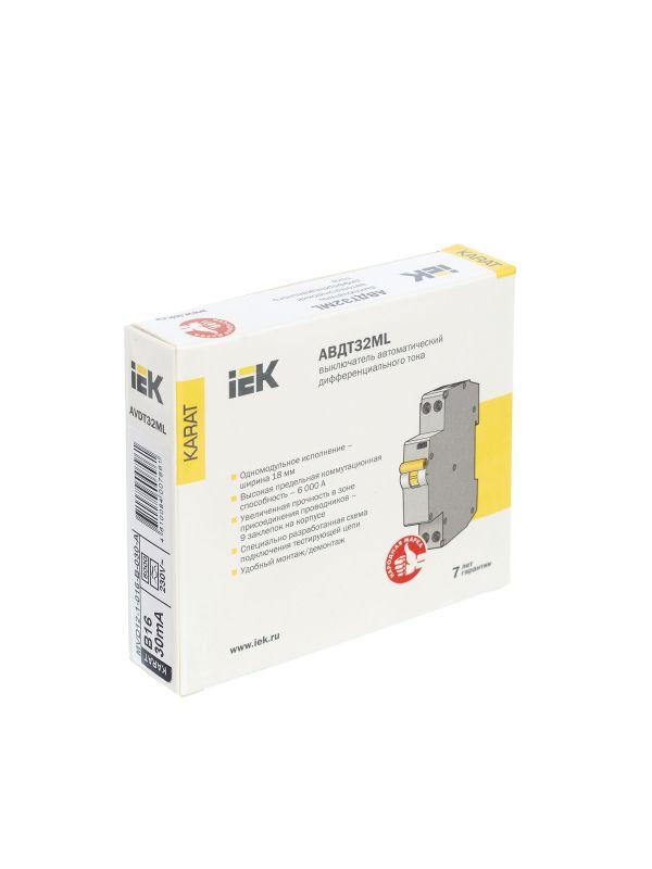 - Выключатель автоматический дифференциального тока B 16А 30мА тип A АВДТ32ML KARAT IEK MVD12-1-016-B-030-A