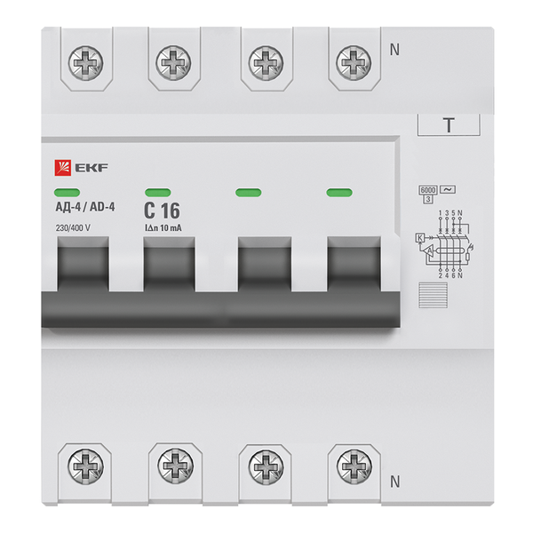 - Выключатель автоматический дифференциального тока C 16А 10мА тип AC 6кА АД-4 (электрон.) PROxima EKF DA4-6-16-10-pro