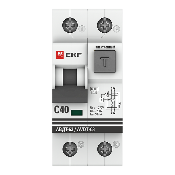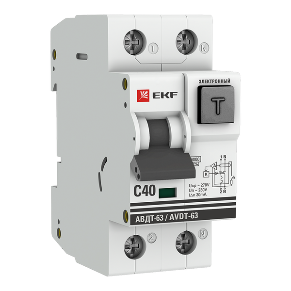 - Выключатель автоматический дифференциального тока C 40А 30мА тип А 6кА АВДТ-63 (электрон.) PROxima EKF DA63-40-30e