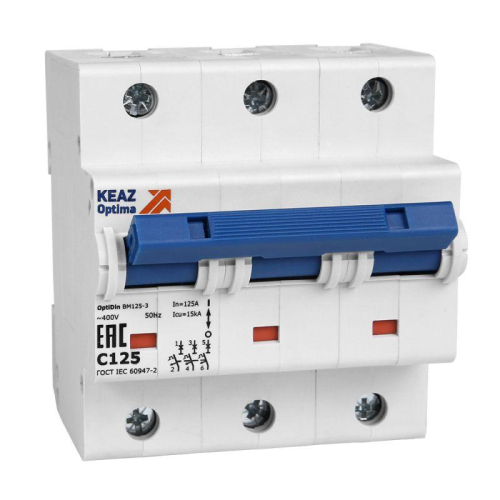 - Выключатель автоматический модульный 3п D 80А 20кА OptiDin BM125-3D80-14ln-УХЛ3 КЭАЗ 138602