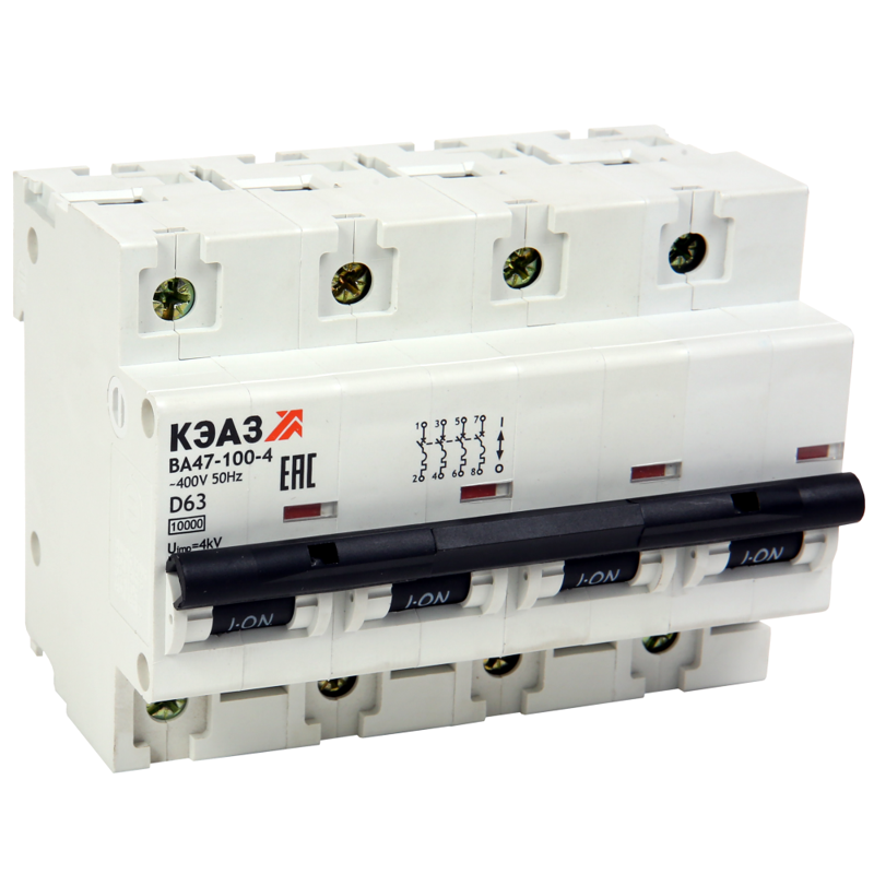 - Выключатель автоматический модульный 4п C 63А 10кА ВА47-100-4C63-УХЛ3 КЭАЗ 318162