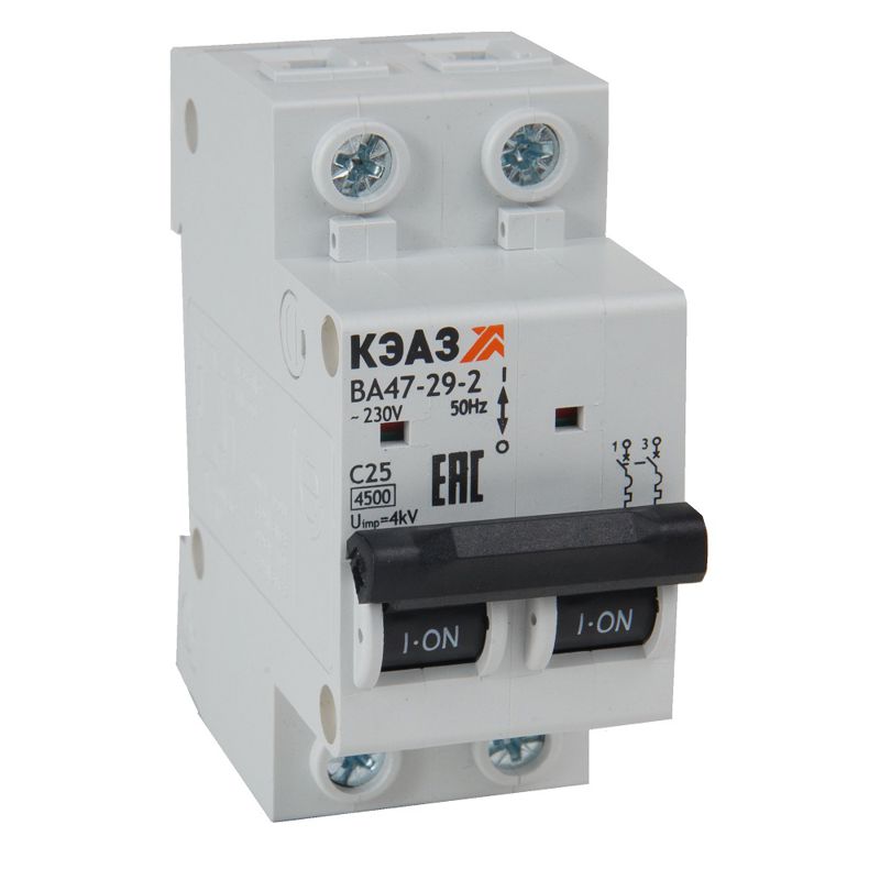 - Выключатель автоматический модульный 2п C 50А 4.5кА ВА47-29-2C50-УХЛ3 КЭАЗ 318250