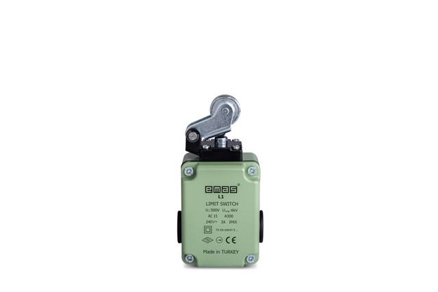 - Выключатель концевой быстрого переключения угловой 1-но направленный с алюм. консолью и стальным роликом Ф22мм 1НО+1НЗ EMAS L1K13MIM211