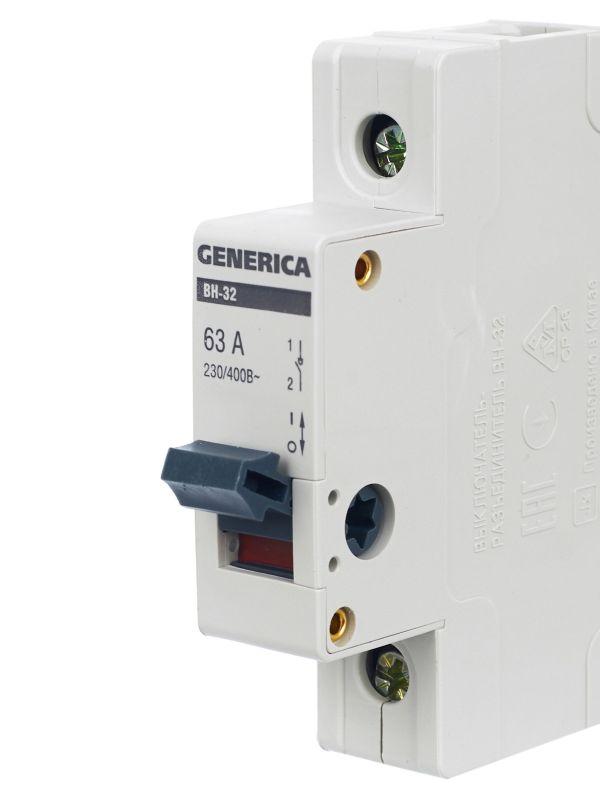 - Выключатель нагрузки (мини-рубильник) 1п 63А ВН-32 GENERICA MNV15-1-063