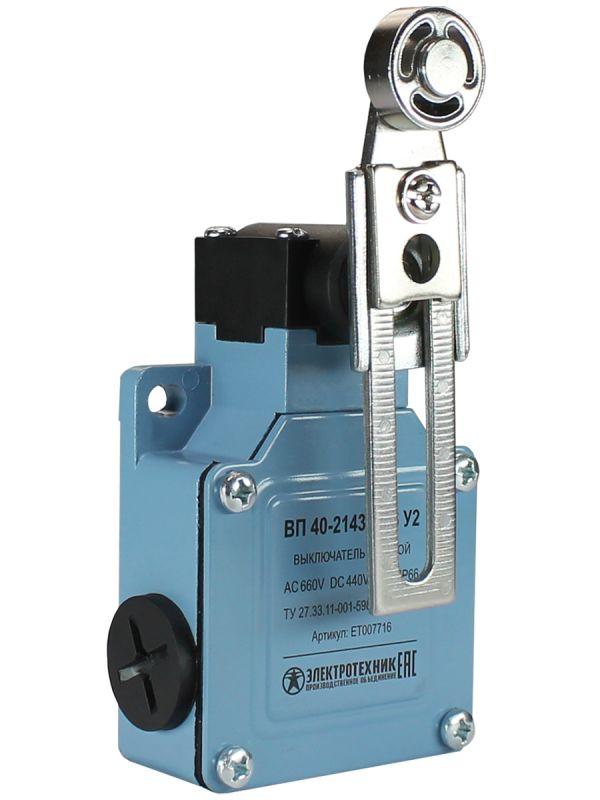 - Выключатель путевой ВП 40-2143М-66 У2 1НО+1НЗ IP66 рычаг со стальным роликом регулир. по длине мгновенный без сальника Электротехник ET007716